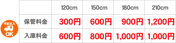 他にも、ピアノ (5,775円/月~)、スキー板(420円/月~)、スーツケース(525円/月~)、雛人形などの多様な保管メニューがあります。詳細はお問い合わせ下さい!